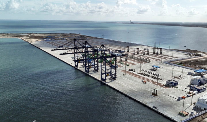 这是2023年12月1日在埃及亚历山大拍摄的由中国港湾工程有限责任公司承建的阿布基尔集装箱码头。新华社发(中国港湾工程有限责任公司供图)